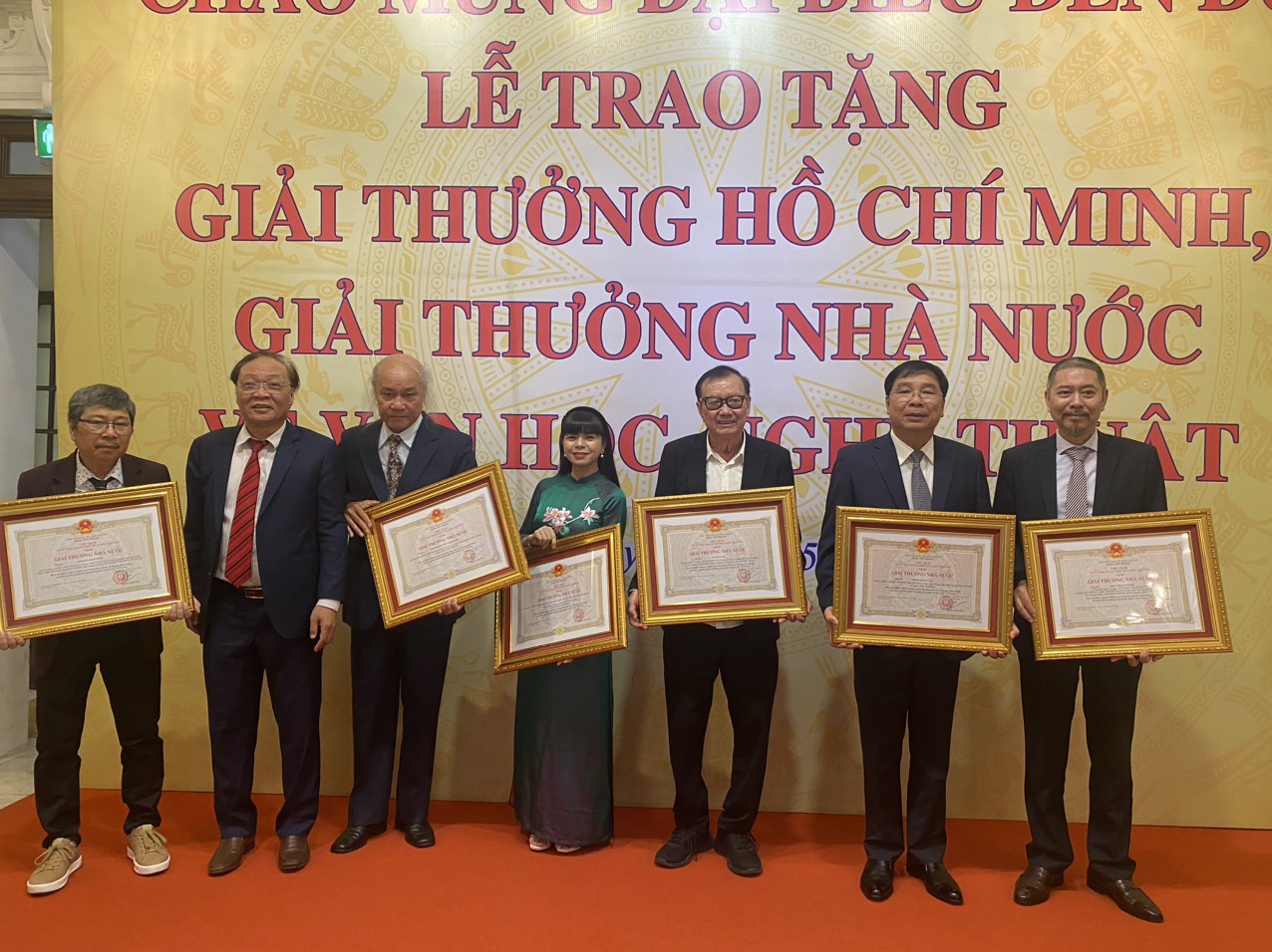 Lễ trao tặng Giải thưởng Hồ Chí Minh, Giải thưởng Nhà nước về văn học, nghệ thuật do Bộ Văn hóa, Thể thao và Du lịch tổ chức sáng 19/5, kỷ niệm 133 năm ngày sinh Chủ tịch Hồ Chí Minh 19/5/1890 - 19/5/2023 đã diễn ra trang trọng tại Nhà hát Lớn Hà Nội.Theo đó, có 128 tác giả, đồng tác giả được trao Giải thưởng Hồ Chí Minh, Giải thưởng Nhà nước về văn học, nghệ thuật, trong đó có 16 tác giả, đồng tác giả được tặng, truy tặng Giải thưởng Hồ Chí Minh vào đợt này.