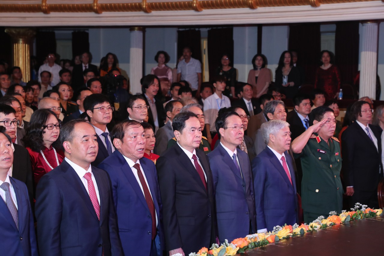 Trong buổi Lễ trang trọng này, chúng ta cùng nhau dành tình cảm sâu sắc để tri ân đến các thế hệ văn nghệ sĩ đã anh dũng hy sinh trong sự nghiệp cách mạng. Và cùng nhau vinh danh những văn nghệ sĩ, bằng tài năng sáng tạo và sức lao động bền bỉ đã làm ra các tác phẩm, cụm tác phẩm có giá trị đặc biệt xuất sắc về nội dung tư tưởng và hình thức nghệ thuật; có tác dụng to lớn phục vụ sự nghiệp cách mạng, có ảnh hưởng rộng lớn và lâu dài trong đời sống xã hội, góp phần xây dựng con người mới, nâng cao trình độ thẩm mỹ và nhận thức của nhân dân, đóng góp vào sự nghiệp phát triển nền văn hóa, văn học, nghệ thuật Việt Nam tiên tiến, đậm đà bản sắc dân tộc.