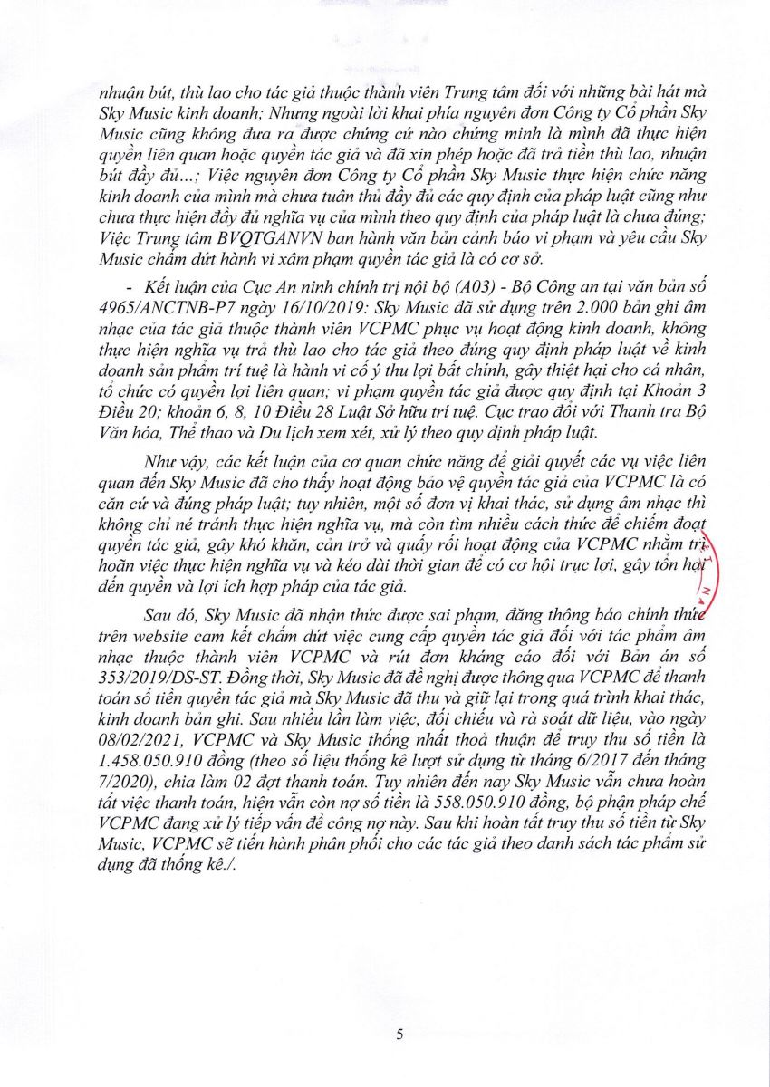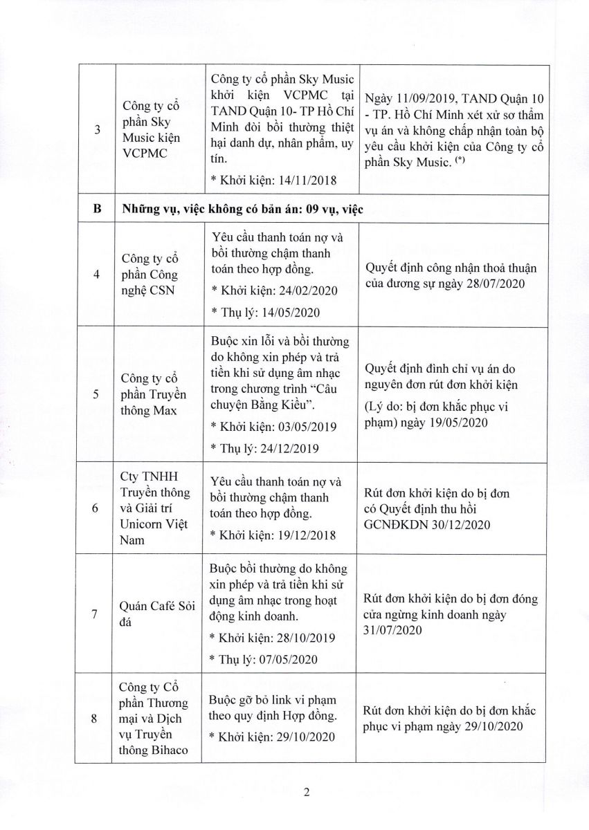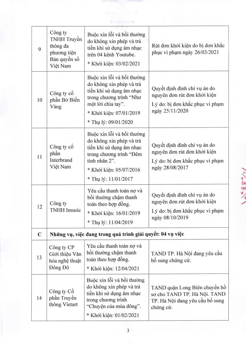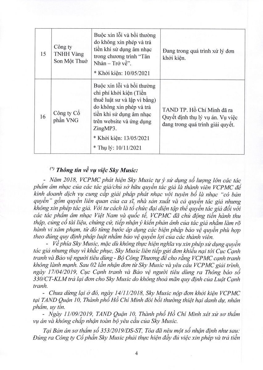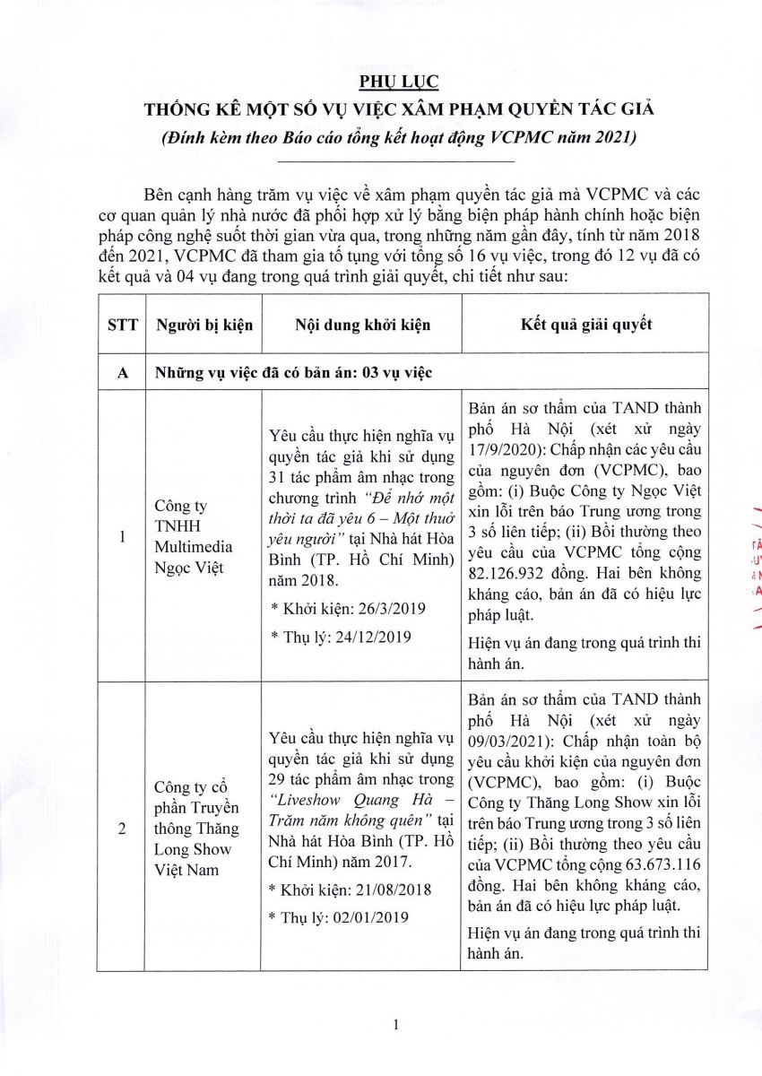 Trong năm 2021, số tiền sử dụng quyền tác giả âm nhạc VCPMC đã thu chưa bao gồm thuế GTGT là: 159.097.036.759 đồng, tăng 0,6% so với năm 2020, trong đó: