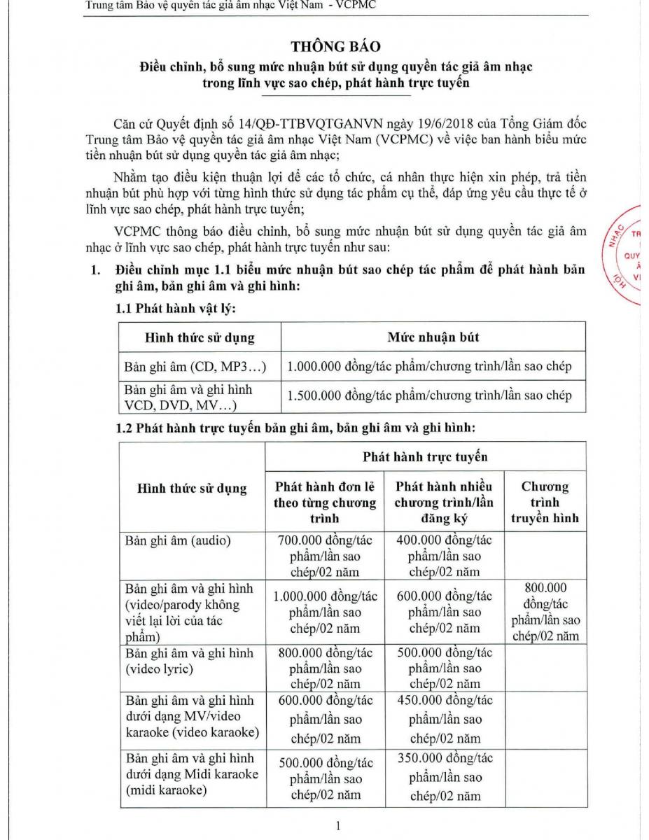 VCPMC - Trung tâm Bảo vệ Quyền tác giả Âm nhạc Việt Nam.