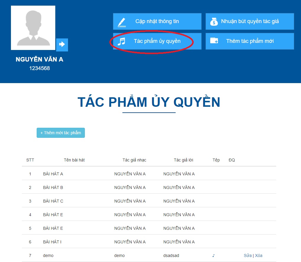 - Danh sách tác phẩm đăng ký sử dụng theo mẫu