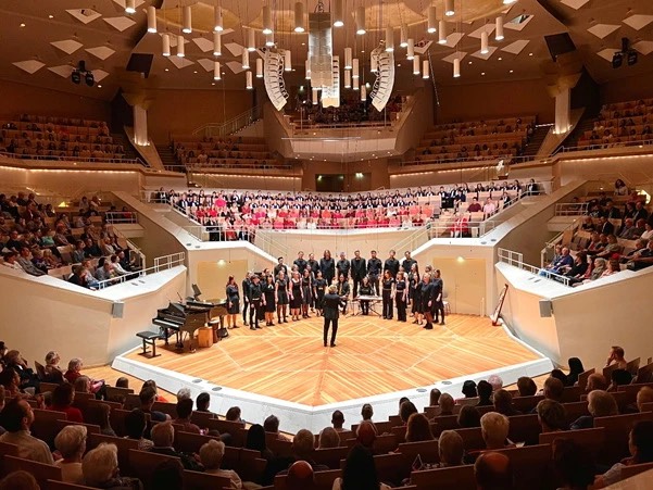 Tại “Thánh đường âm nhạc Berliner Philharmonie” - một trong những phòng hòa nhạc bậc nhất thế giới, lần đầu tiên trong lịch sử, Dàn hợp xướng thính phòng Đức đã trình bày dân ca Việt Nam.