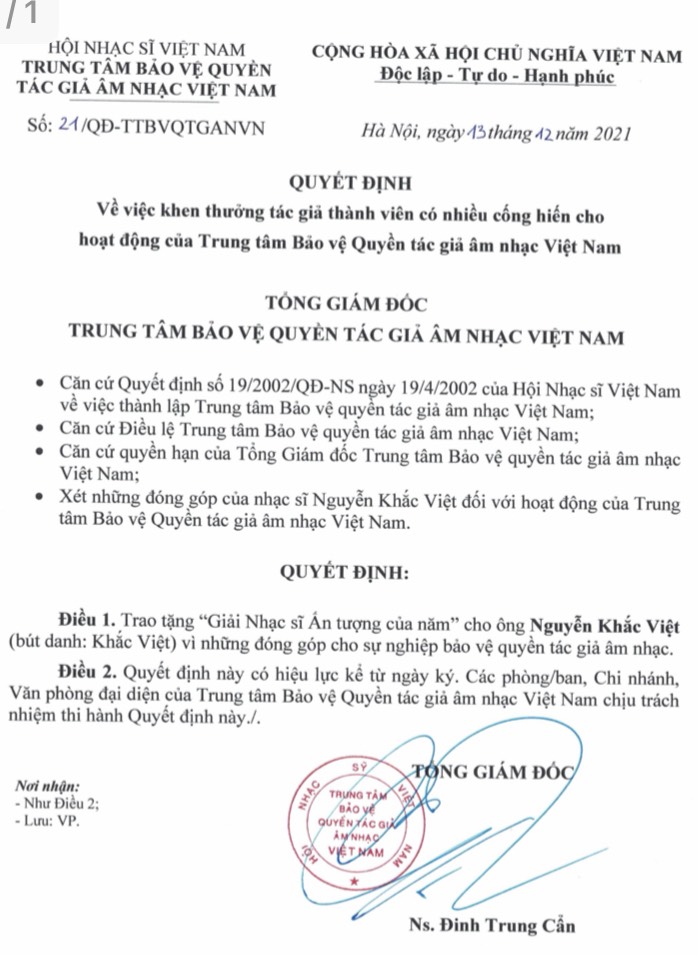 Trung tâm Bảo vệ quyền tác giả âm nhạc Việt Nam kính báo: Nhạc sĩ Nguyễn Tiến, tác giả của những bài hát nổi tiếng...