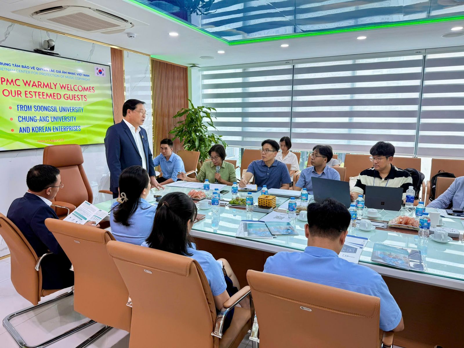 Ngày 11/08/2025, tại Hàn Quốc, Bộ Văn hóa Thể thao Du lịch Việt Nam - Hàn Quốc đã ký kết Bản ghi nhớ Hợp tác (MOU) về quyền tác giả và quyền liên quan, đánh dấu một bước tiến mới trong mối quan hệ hợp tác giữa hai quốc gia. Nhân dịp này, ngày 12/08/2025, tại Hà Nội, Lãnh đạo Trung tâm Bảo vệ Quyền tác giả Âm nhạc Việt Nam (VCPMC) có buổi làm việc với đoàn công tác gồm các giáo sư, nghiên cứu sinh từ hai trường đại học Soongsil & ChungAng, cùng một số chuyên gia đại diện các công ty công nghệ Hàn Quốc về chủ đề ứng dụng công nghệ mới trong lĩnh vực bảo vệ quyền tác giả và quyền liên quan.