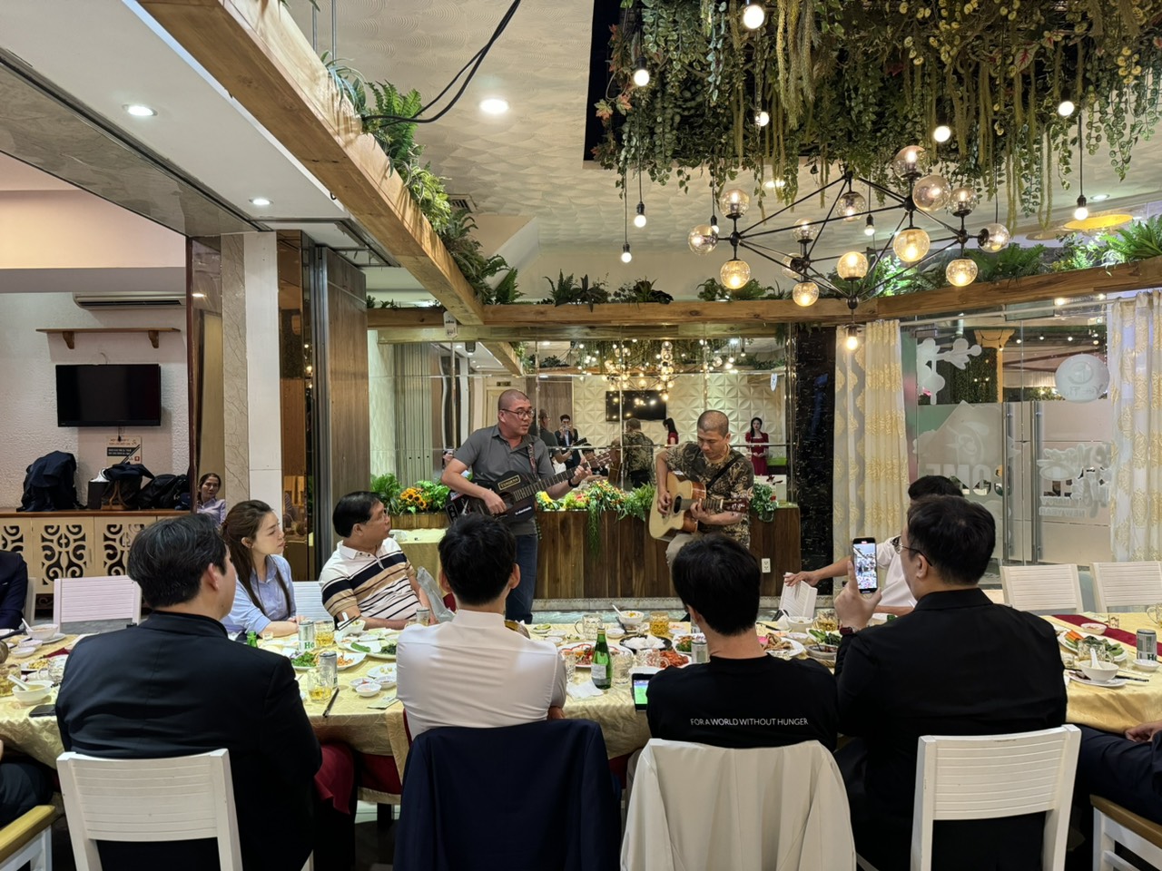 Buổi tiệc diễn ra vui vẻ, đầm ấm và cởi mở, cùng những tiếng đàn, lời ca, khiến cho nhạc sĩ hai nước xích lại gần nhau, không còn khoảng cách.