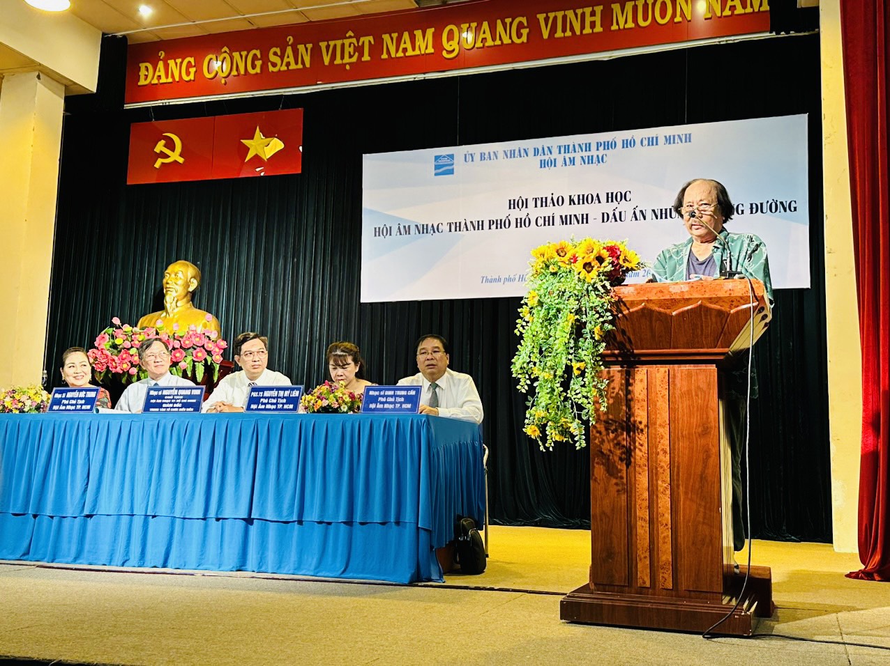 Nhạc sĩ Nguyễn Quang Vinh - Chủ tịch Hội Âm nhạc Thành phố Hồ Chí Minh phát biểu tại Hội thảo