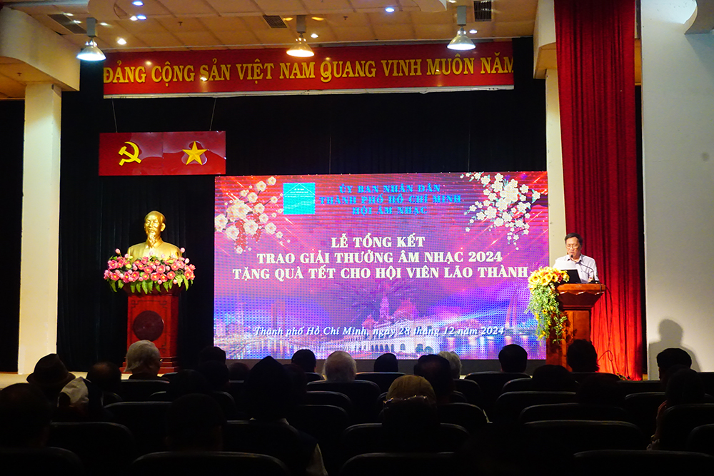 Sáng 28/12/2024, tại Tòa nhà Liên hiệp các Hội VHNT TP. Hồ Chí Minh (Số 81 Trần Quốc Thảo, Phường Võ Thị Sáu, Quận 3), Hội Âm nhạc TP.HCM đã tổ chức Lễ tổng kết hoạt động năm 2024, Trao Giải thưởng Âm nhạc năm 2024 và tặng quà tết cho hội viên lão thành.