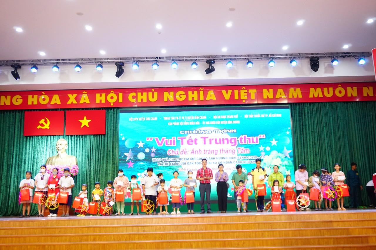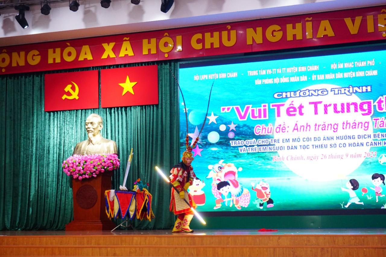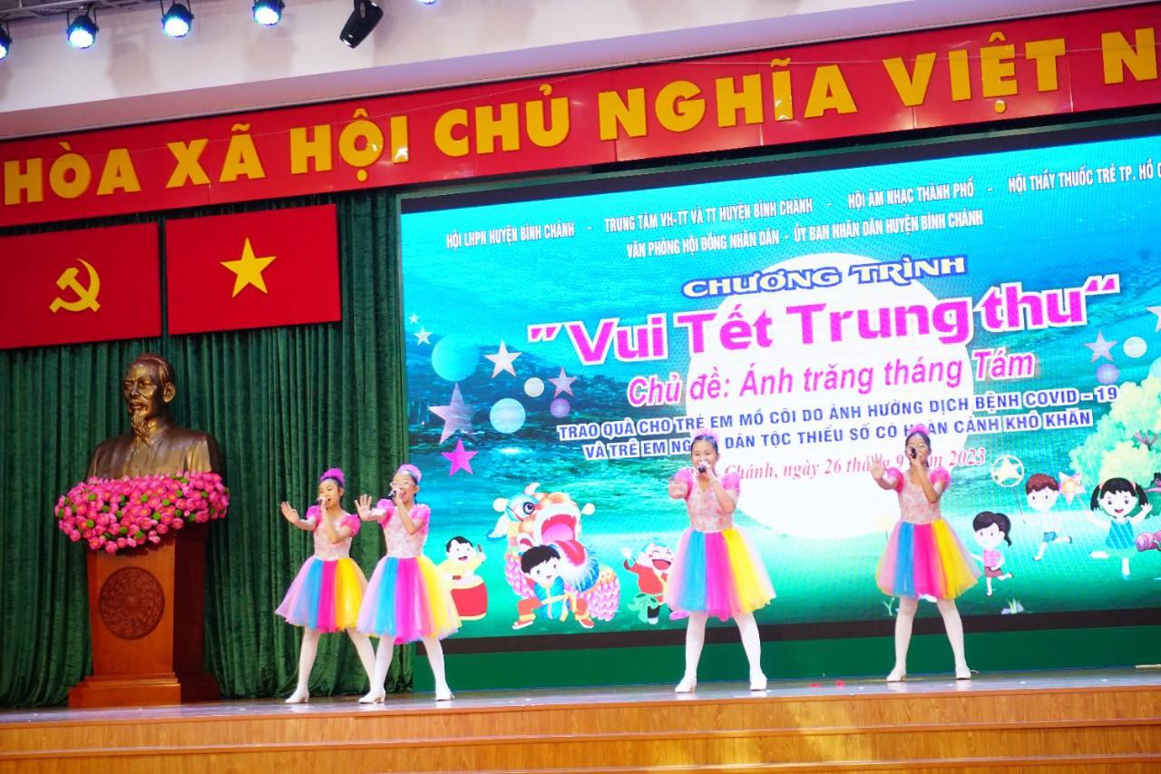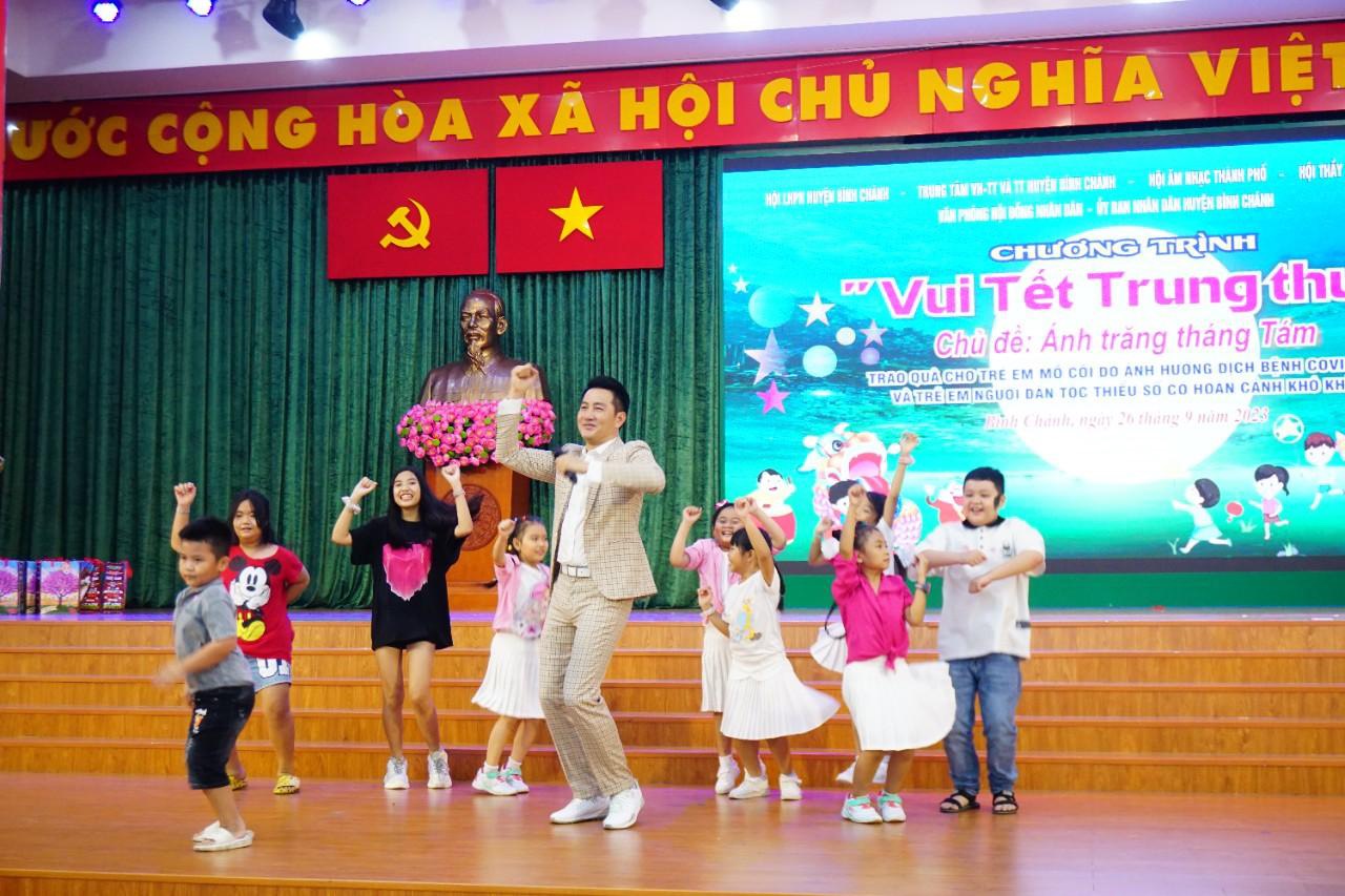 Tối 26/9/2023, Hội Âm nhạc Thành phố Hồ Chí Minh phối hợp với Ủy ban Nhân dân huyện Bình Chánh, Hội Liên hiệp Phụ nữ huyện Bình Chánh, Trung tâm Văn hóa Thể thao và Truyền thông huyện Bình Chánh, Hội Thầy thuốc trẻ TP.HCM tổ chức chương trình “Vui Tết Trung Thu” cho các em mồ côi do ảnh hưởng bởi dịch bệnh Covid-19, trẻ em người dân tộc thiểu số có hoàn cảnh khó khăn tại huyện Bình Chánh.