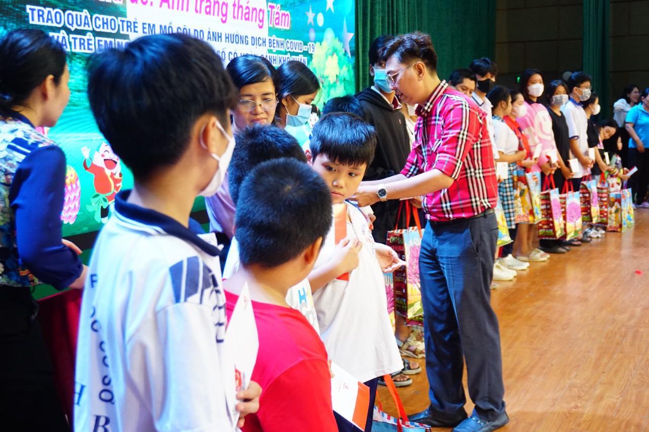 Nhạc sĩ Nguyễn Quang Vinh - Chủ tịch Hội Âm nhạc TP.HCM trao quà cho các em