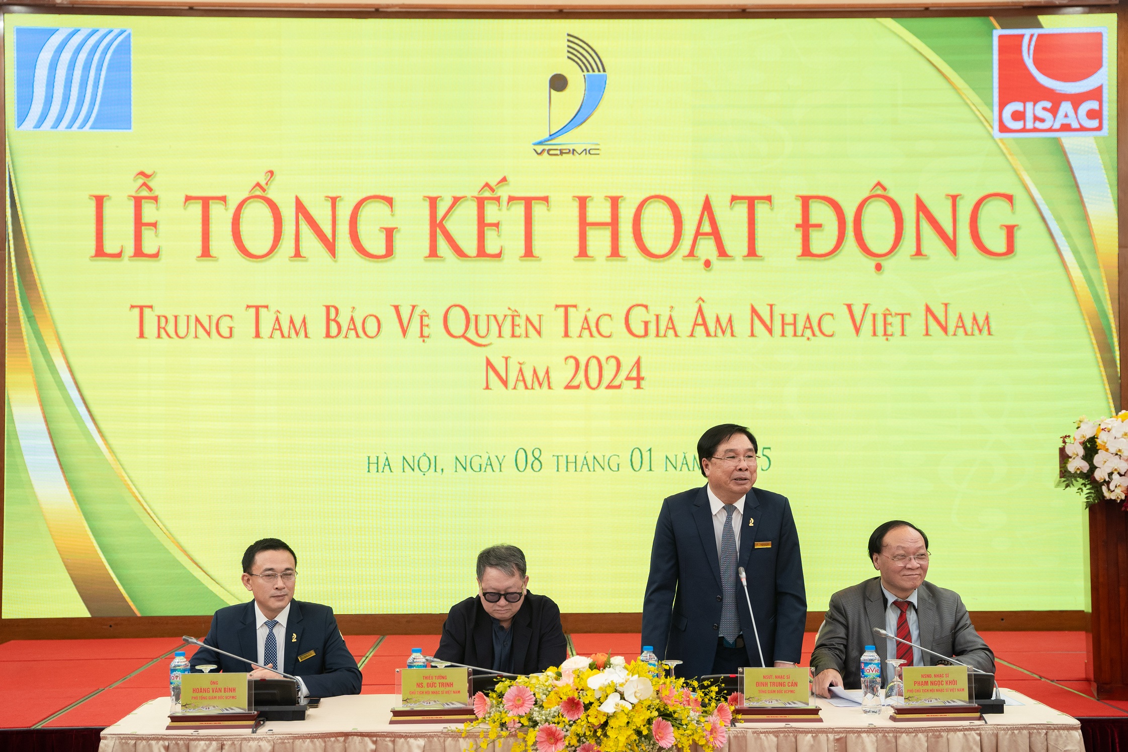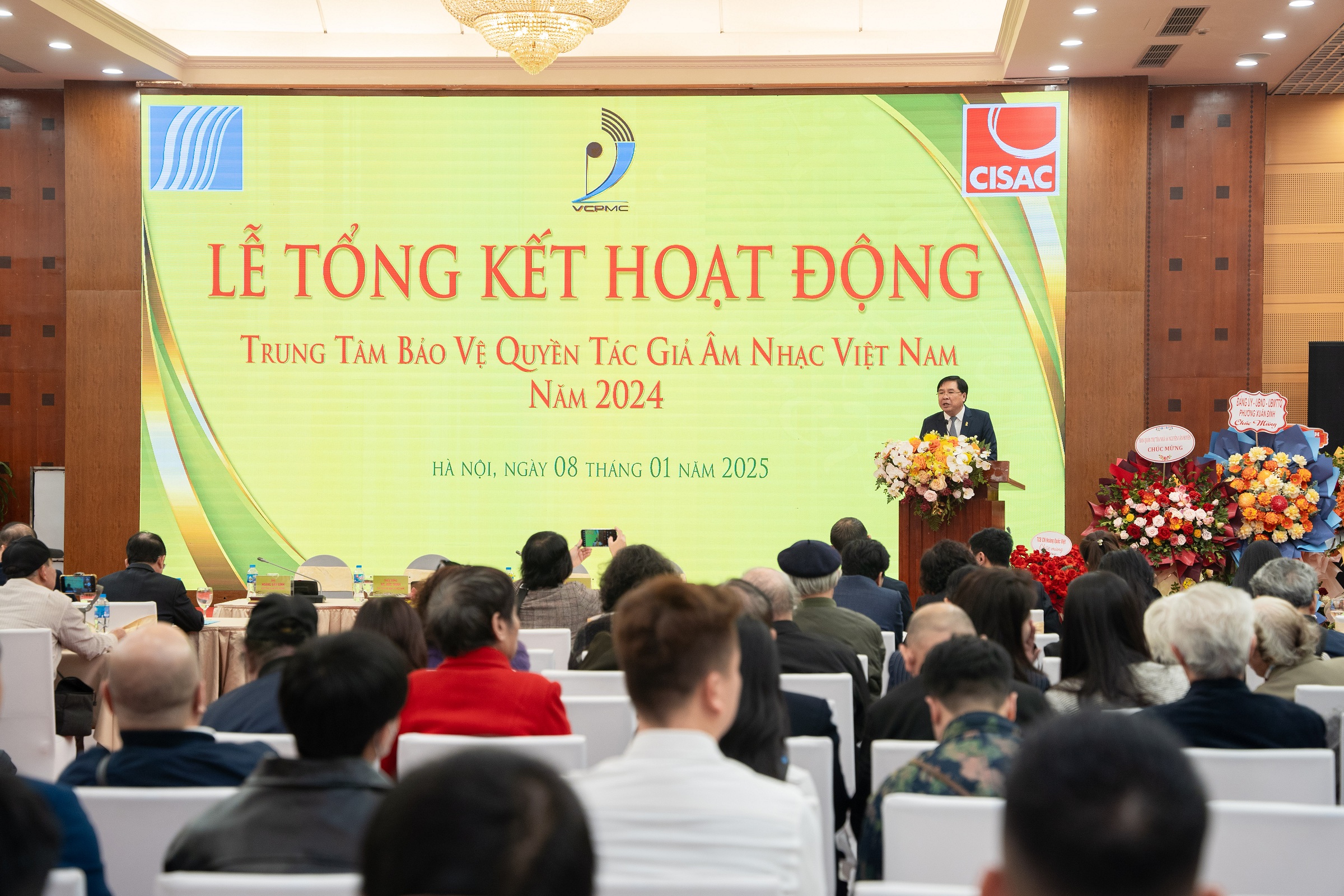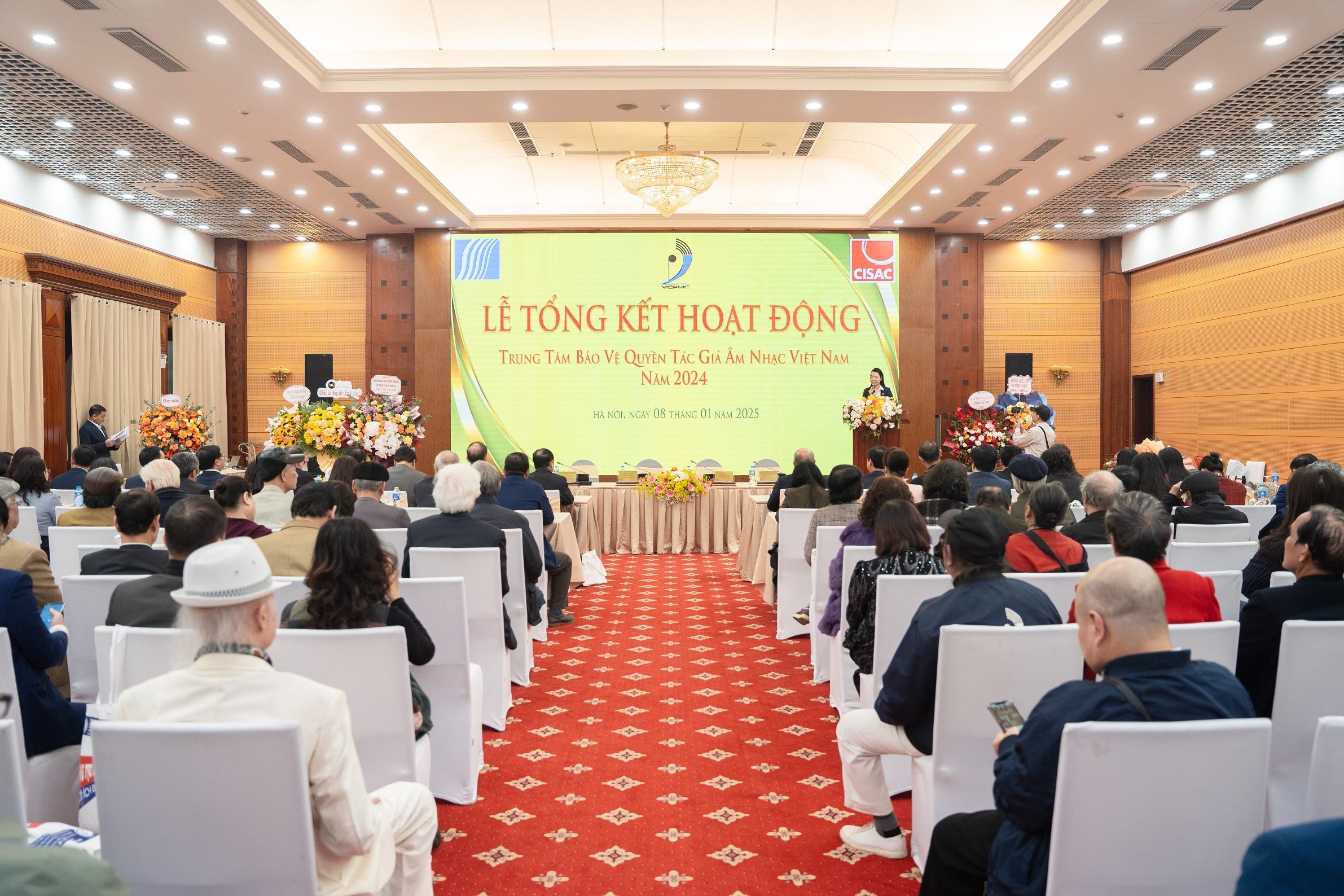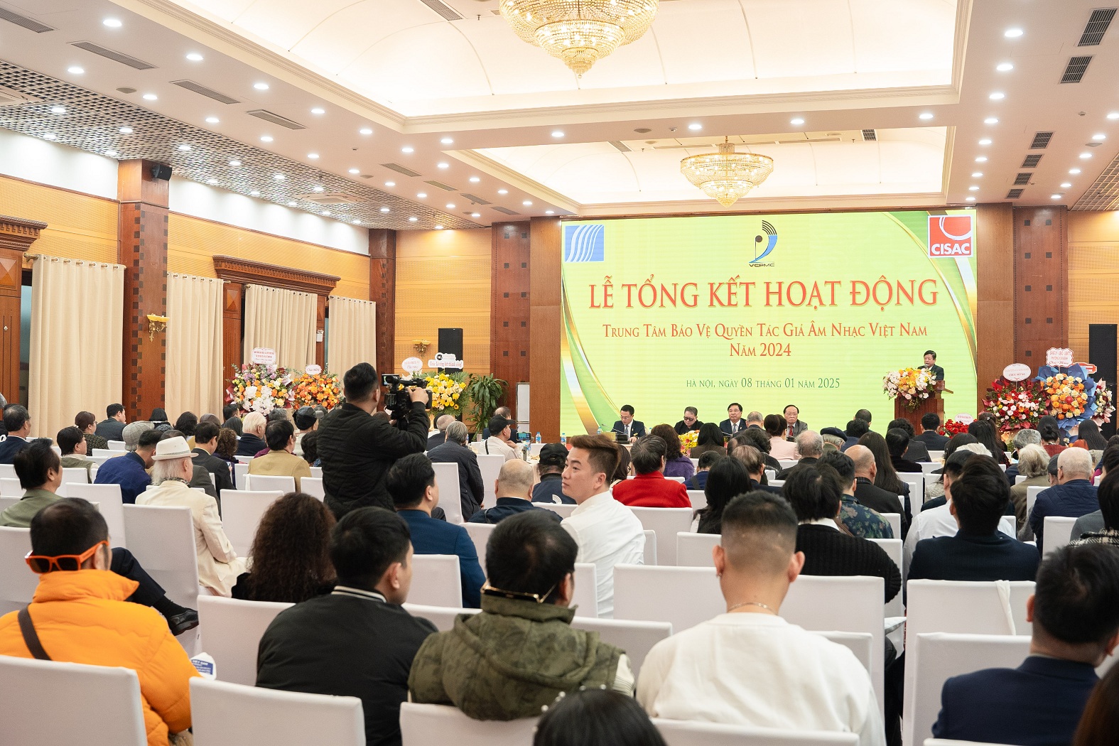 Sáng 8/01/2025, Trung tâm Bảo vệ quyền tác giả âm nhạc Việt Nam tổ chức Hội nghị tổng kết hoạt động năm 2024 và mục tiêu phát triển trong năm mới. Dự Hội nghị có gần 400 đại biểu là lãnh đạo các ban, bộ, ngành Trung ương; lãnh đạo các sở, ban, ngành Thành phố Hà Nội; các đối tác và các tác giả thành viên của VCPMC; các cơ quan thông tấn báo chí Trung ương và Hà Nội.