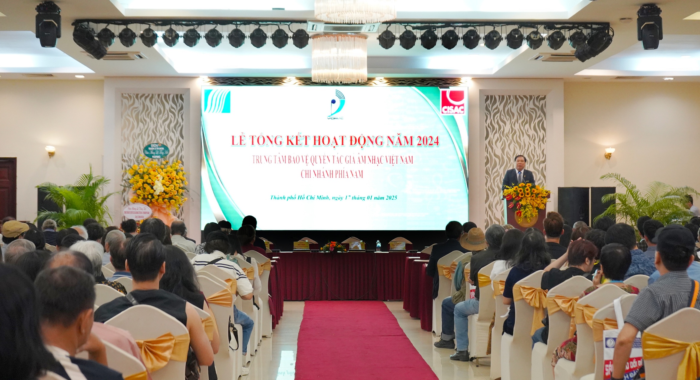 Sáng ngày 17/02/2025, tại Trung tâm Hội nghị 272 Võ Thị Sáu, Quận 3 - Thành phố Hồ Chí Minh, Trung tâm Bảo vệ quyền tác giả âm nhạc Việt Nam, Chi nhánh phía Nam tổ chức tổng kết hoạt động năm 2024.