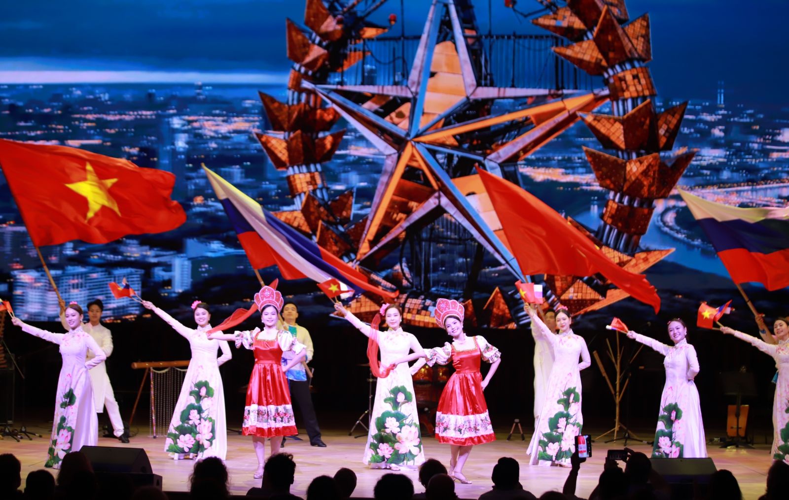 Bên cạnh đó, các tiết mục múa và trình diễn một số loại nhạc cụ truyền thống đặc sắc của Việt Nam, giới thiệu những nét đặc trưng của văn hóa Việt Nam. Cùng với đó là các tiết mục giới thiệu vẻ đẹp đất nước, con người Việt Nam-Nga, đồng thời ca ngợi tình hữu nghị bền chặt đã được thử thách qua năm tháng giữa Việt Nam và Liên bang Nga.