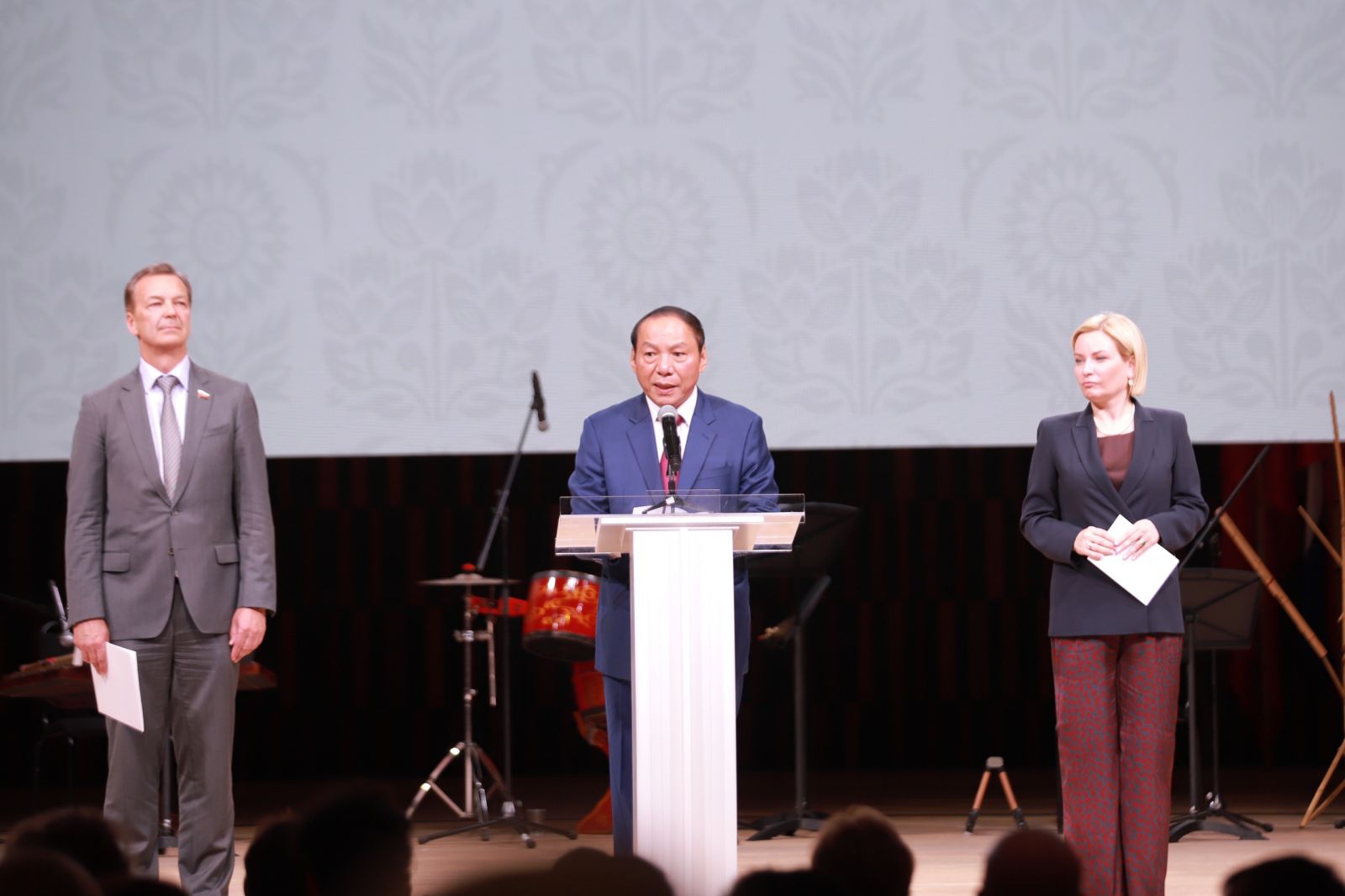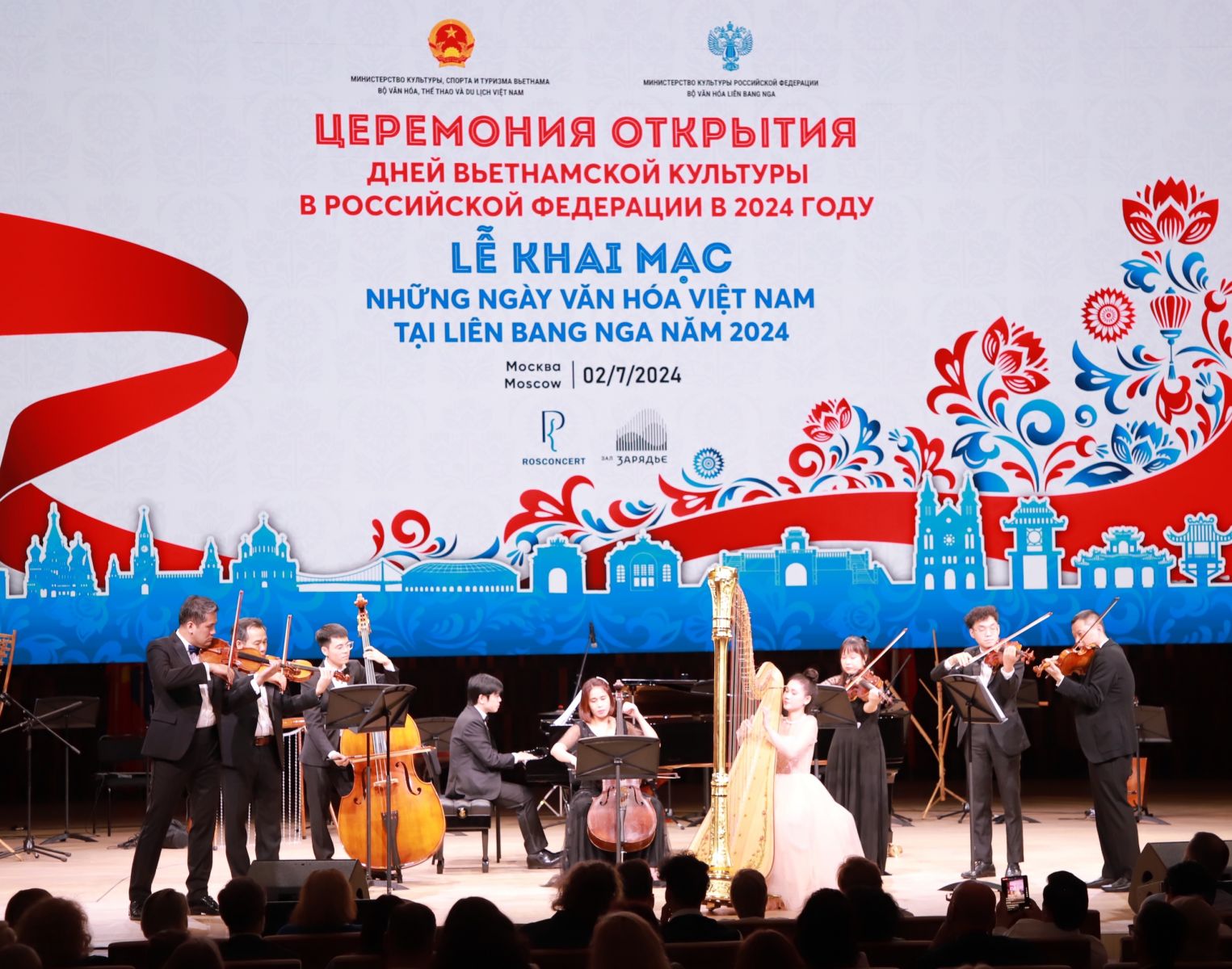 "Ngày hôm nay, tại Phòng Hòa nhạc Zaryadie Moscow - một trong những sân khấu mang tính biểu tượng của Liên bang Nga, khán giả sẽ được thưởng thức chương trình nghệ thuật đặc biệt kết hợp giữa âm nhạc cổ điển, thính phòng Việt Nam-Nga và trình diễn âm nhạc truyền thống cùng các tiết mục múa của Việt Nam do các nghệ sĩ Học viện Âm nhạc quốc gia Việt Nam và Nhà hát Nghệ thuật đương đại Việt Nam trình diễn.