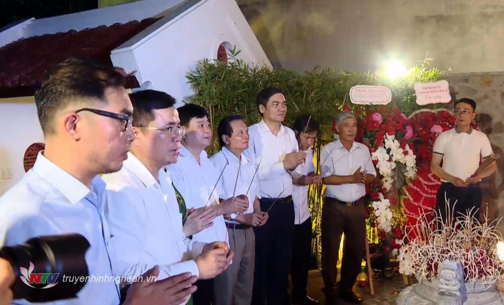Tới dự có ông Lê Doãn Hợp - nguyên Uỷ viên Trung ương Đảng, nguyên Bộ trưởng Bộ Thông tin - Truyền thông, Chủ tịch Hội Đồng hương Nghệ An tại Hà Nội; ông Nguyễn Thế Kỷ - Nguyên Uỷ viên Trung ương Đảng, nguyên Phó Trưởng ban Tuyên giáo Trung ương, nguyên Tổng Giám đốc Đài Tiếng nói Việt Nam, Chủ tịch Hội đồng Lý luận, Phê bình văn học nghệ thuật Trung ương; Hoàng Nghĩa Hiếu - Phó Bí thư Tỉnh uỷ; Lãnh đạo các Sở, ngành, cùng đông đảo thân nhân, bạn bè văn nghệ sĩ gần xa, cùng bà con nhân dân địa phương.