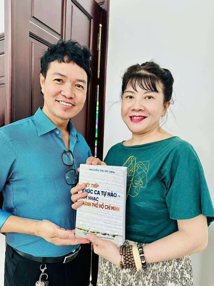 Ca sĩ Anh Bằng và PGS TS Nguyễn Thị Mỹ Liêm với sách "Viết tiếp khúc ca tự hào âm nhạc TP HCM"