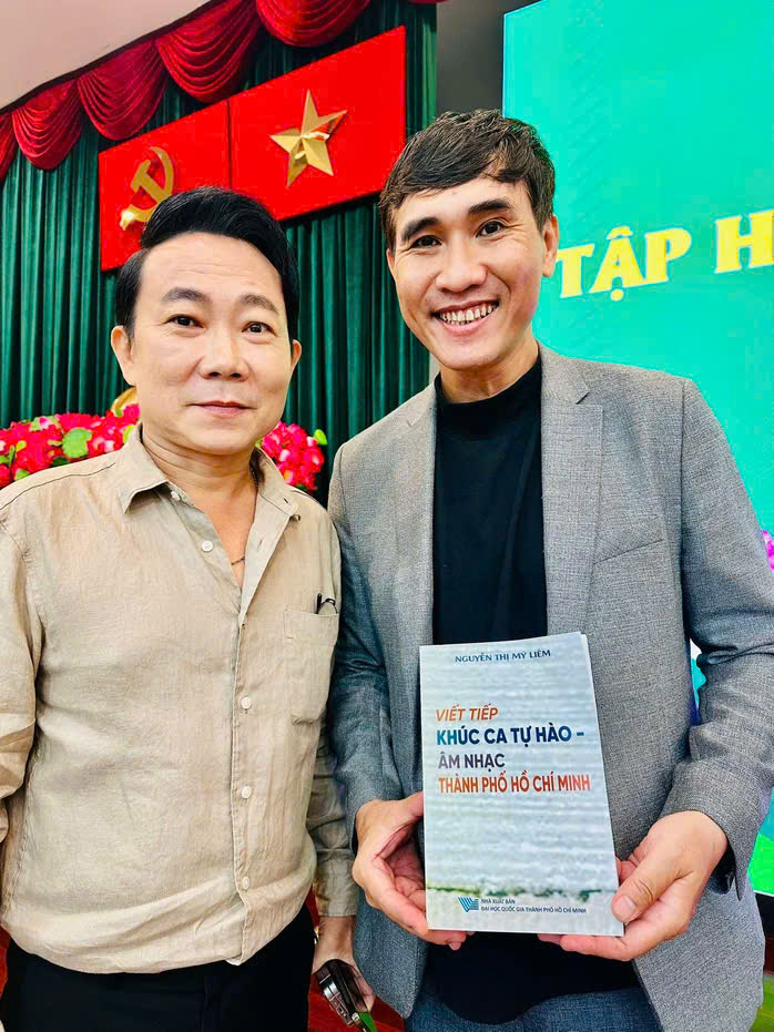 Ca sĩ Huỳnh Lợi và TS Lê Hồng Phước với sách "Viết tiếp khúc ca tự hào âm nhạc TP HCM"