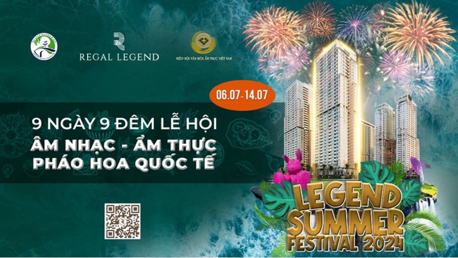 Lễ hội mùa hè 2024 - Legend Summer Festival với đại nhạc hội EDM, trình diễn pháo hoa, lễ hội ẩm thực sẽ diễn ra 9 ngày 9 đêm tại phố đi bộ và bãi biển dự án Regal Legend, thành phố Đồng Hới, tỉnh Quảng Bình.
