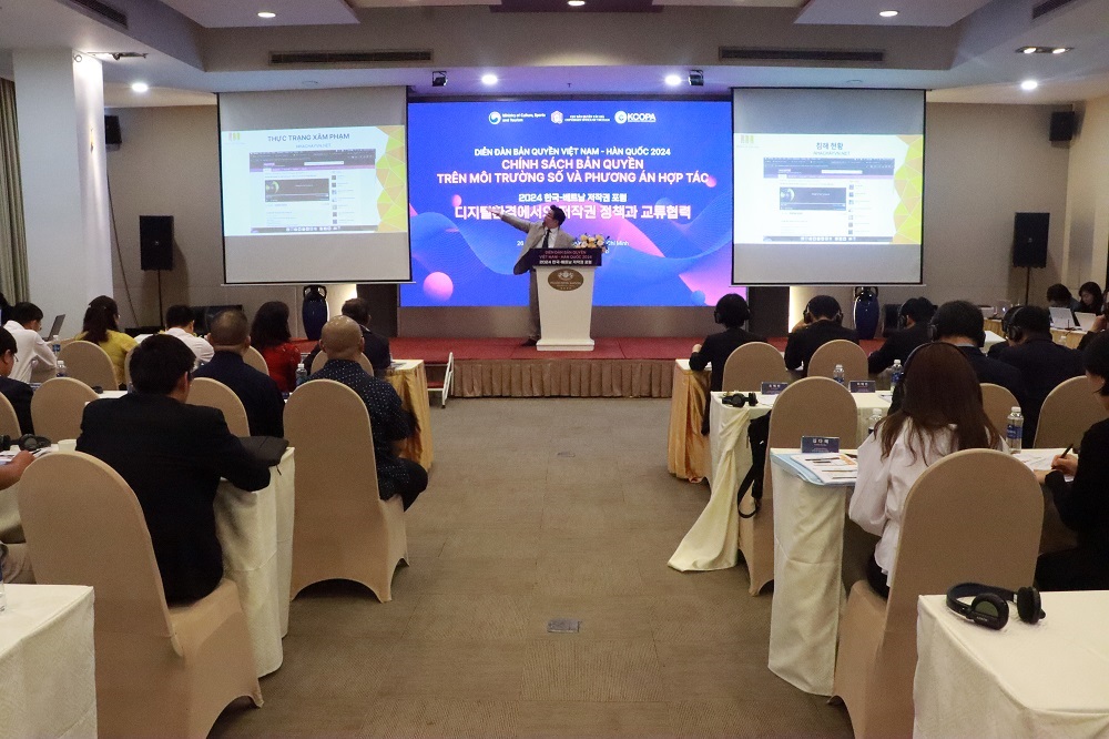 Ngày 26/3, Cục Bản quyền tác giả (trực thuộc Bộ VH-TT&DL) phối hợp với Cơ quan Bảo vệ bản quyền Hàn Quốc (KCOPA) tổ chức Diễn đàn Bản quyền Việt Nam - Hàn Quốc năm 2024 tại TP.HCM với chủ đề " Chính sách bản quyền trên môi trường số và phương án hợp tác".