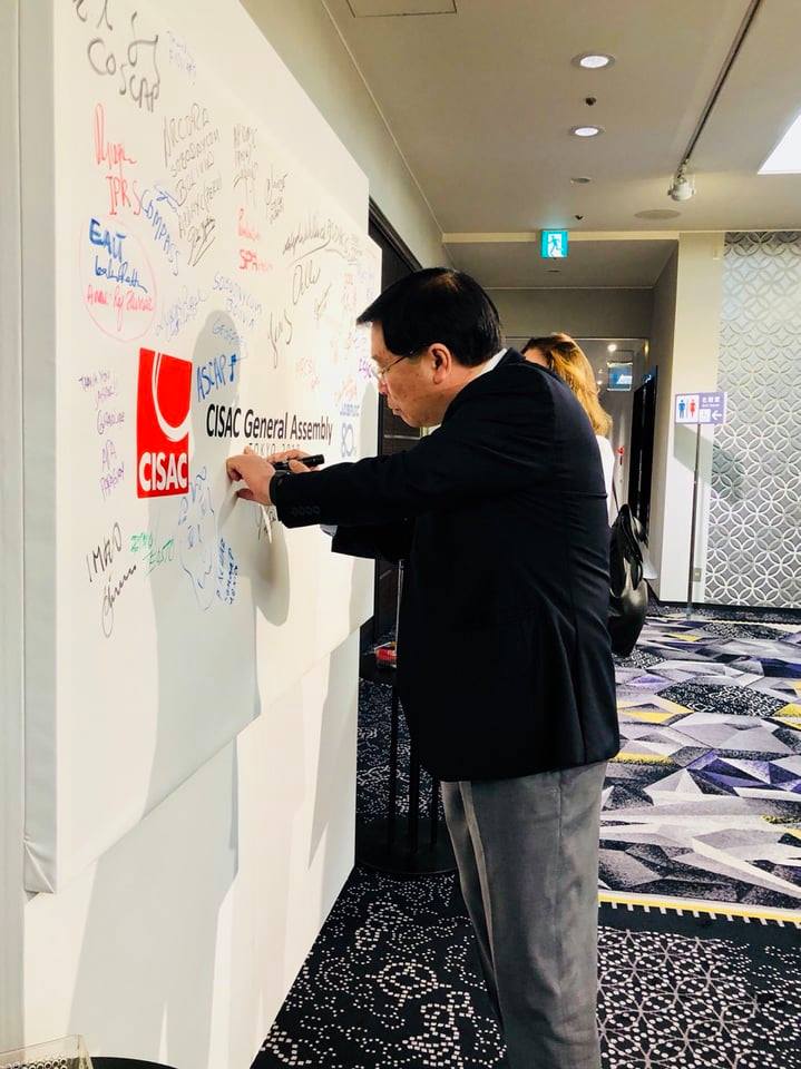 Nhạc sĩ Đinh Trung Cẩn - Tổng Giám đốc VCPMC ký tên vào danh sách thành viên CISAC 2019