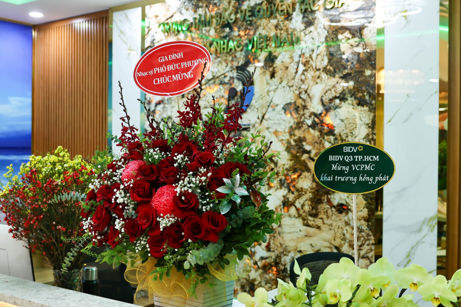 Các vị đại biểu khách quý cũng đã có những chia sẻ chân tình, ghi nhận, đánh giá cao những thành tựu mà Trung tâm Bảo vệ quyền tác giả âm nhạc Việt Nam đã đạt được trong thời gian qua, đồng thời cũng gửi những lời chúc tốt đẹp, những lẵng hoa tươi thắm tới Tập thể VCPMC.