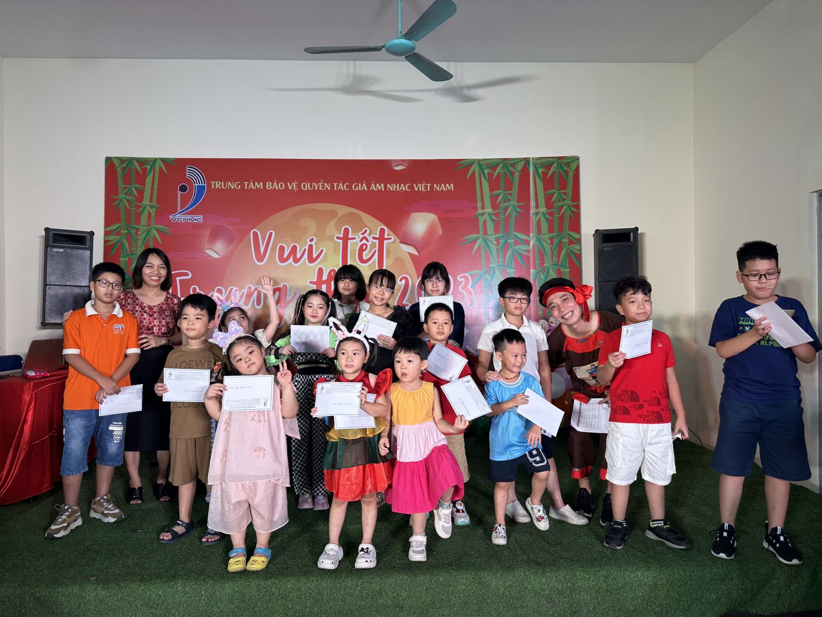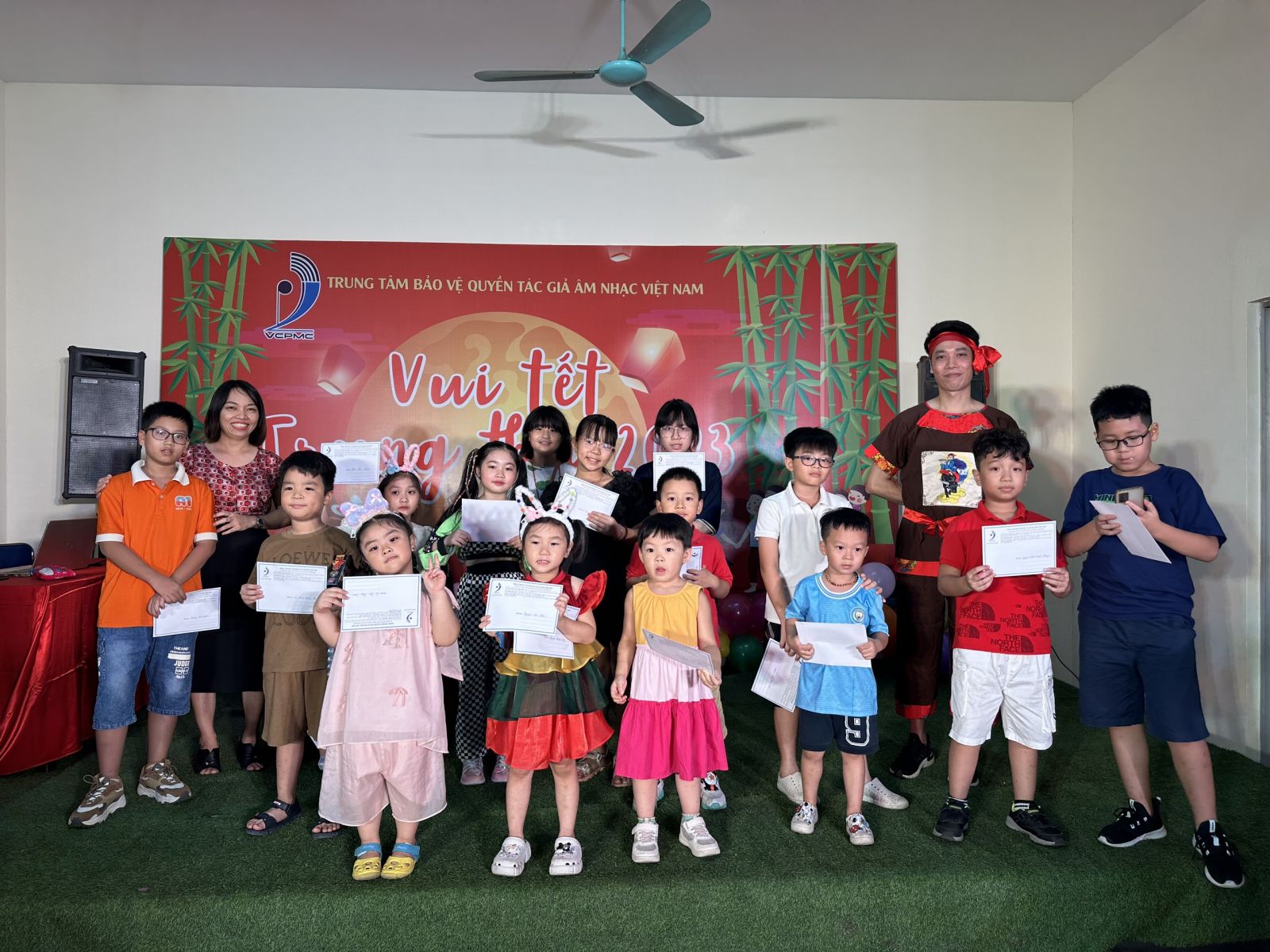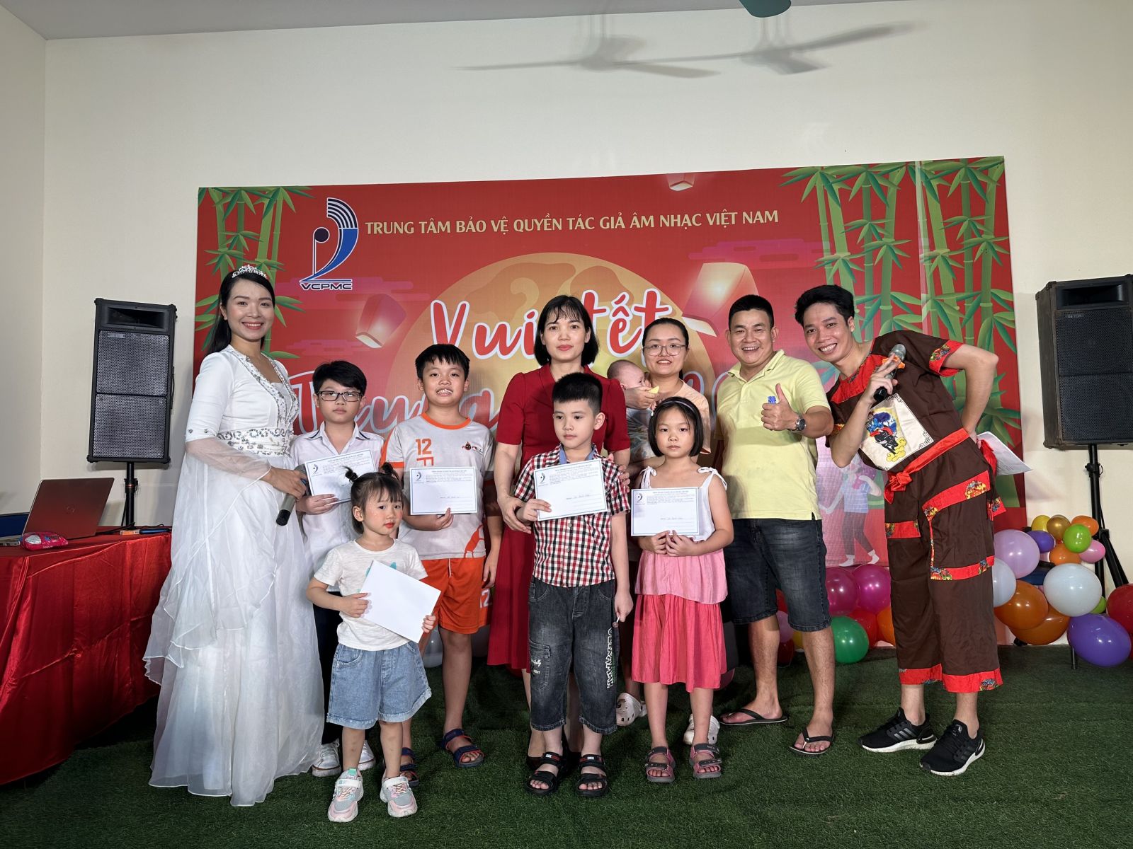 Vui Tết Trung Thu năm nay có khoảng 40 cháu thiếu nhi với các lứa tuổi khác nhau là con cán bộ nhân viên của Trung tâm Bảo vệ quyền tác giả âm nhạc Việt Nam. Đây là dịp để con em cán bộ nhân viên Trung tâm gặp gỡ, giao lưu, thắt chặt thêm tình thân giữa cán bộ, nhân viên trong một hoạt động nhiều ý nghĩa dành cho thiếu nhi.