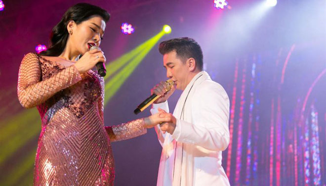 | Đàm Vĩnh Hưng, Lệ Quyên trong một chương trình biểu diễn. |