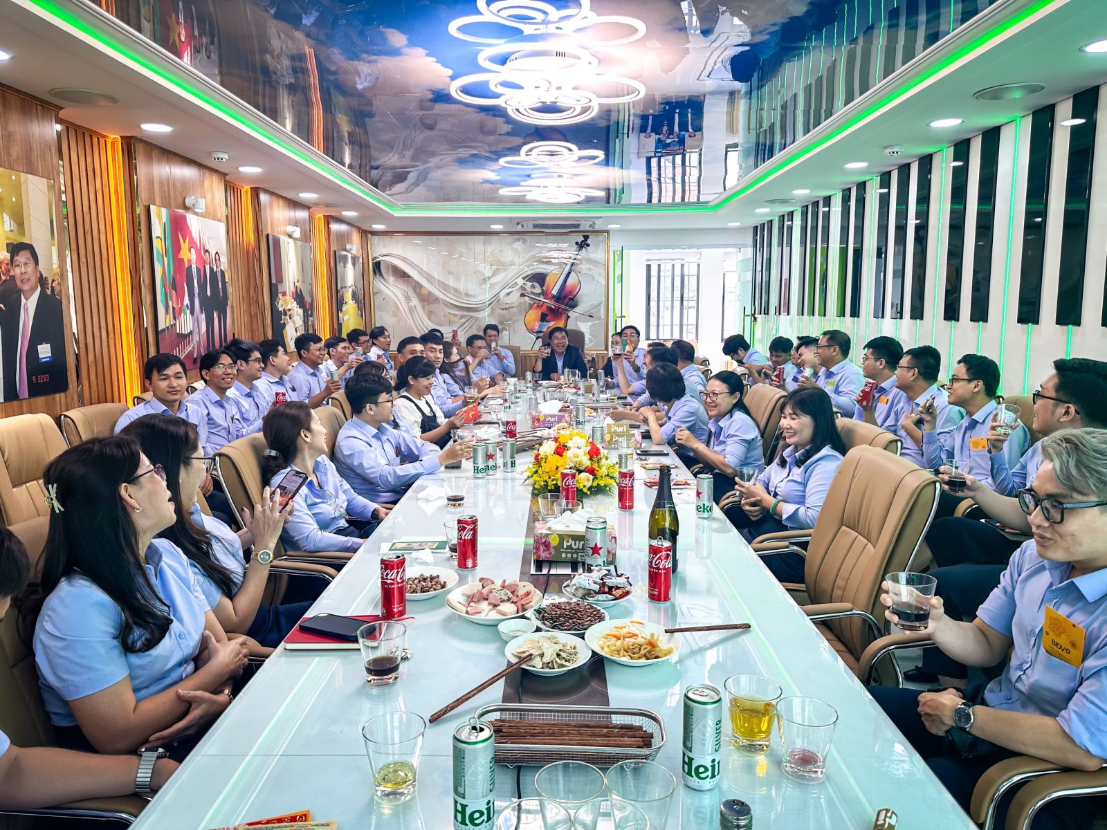 Tổng Giám đốc cũng không quên nhắc lại những thành tựu mà các cán bộ, nhân viên của Trung tâm đã nỗ lực vượt qua mọi gian khó để hoàn thành xuất sắc nhiệm vụ, kế hoạch đã đề ra trong năm 2023. Đặc biệt là việc Trung tâm đã hoàn thiện và chuyển trụ sở của Chi nhánh phía Nam về địa chỉ mới, khang trang và to đẹp hơn tại số 91-93 Đường số 5, Phường An Phú, Thành phố Thủ Đức, Thành phố Hồ Chí Minh (Tòa nhà VCPMC Crescendo).