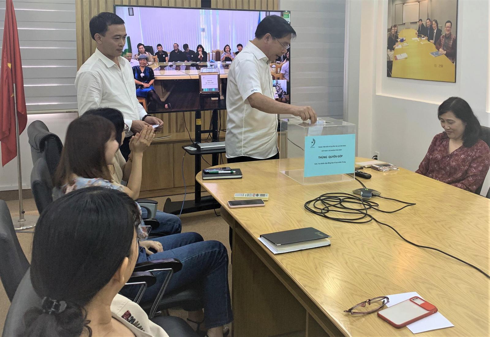 Tổng số tiền quyên góp đợt 1 là: 28.160.000 đ Hai mươi tám triệu, một trăm, sáu mươi ngàn đồng chẵn đã được đại diện VCPMC mang đến trao cho Quỹ vì miền Trung của Báo Tuổi trẻ Thành phố Hồ Chí Minh.