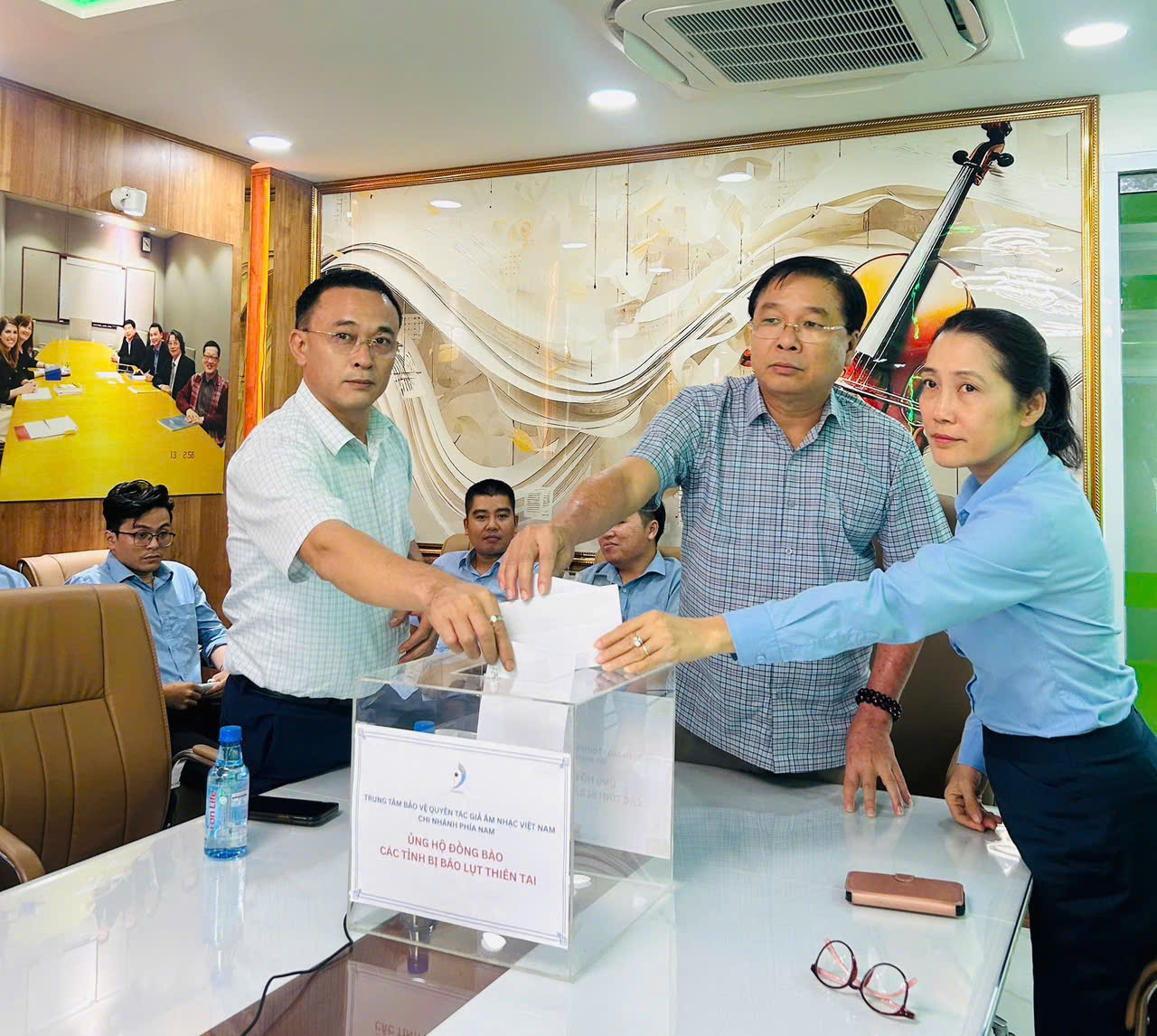Theo chỉ đạo của lãnh đạo Thành phố là “Hỗ trợ nhanh nhất, cao nhất, kịp thời nhất, có trọng tâm, trọng điểm, phù hợp với nhu cầu khắc phục thiệt hại thực tế”. Các cơ quan, đoàn thể, trong đó có đội ngũ văn nghệ sĩ, được kêu gọi phát huy truyền thống “tương thân, tương ái, nghĩa tình” để đồng hành cùng người dân vùng thiên tai. Trên tinh thần ấy, cán bộ nhân viên VCPMC trích một ngày lương để chia sẻ khó khăn với đồng bào vùng lũ với số tiền là 83.494.741đ đã được Trung tâm chuyển tới Quỹ của Uỷ ban Trung ương Mặt trận Tổ quốc Việt Nam - Thành phố Hồ Chí Minh vào chiều 26/11.