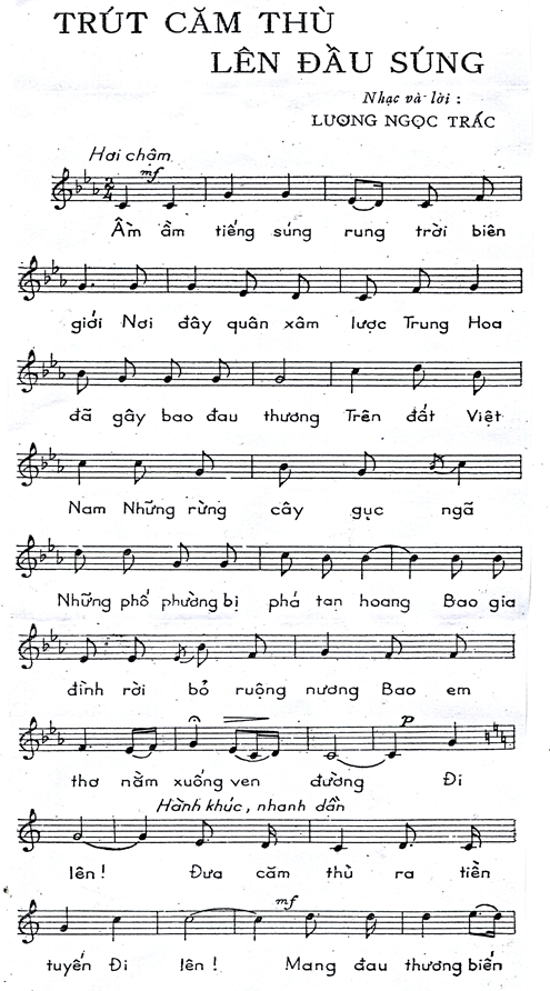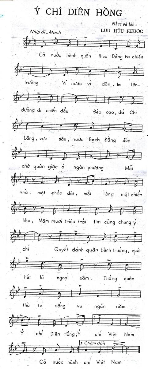 Thực hiện lệnh tổng động viên của Chủ tịch nước, toàn dân Việt Nam, trong đó có giới Văn học Nghệ thuật đã lên đường. Từ 1979, nhiều ca khúc khí thế ngút trời, hình tượng Diên Hồng lại được nhạc sĩ Lưu Hưu Phước tái hiện, các ca khúc tiêu biểu này đã chỉ đích danh bọn bá quyền Trung Quốc như các bài: Ý chí Diên Hồng - nhạc và lời Lưu Hữu Phước, Giặc đến nhà trẻ già phải đánh - nhạc và lời của Đỗ Nhuận, Việt Nam ơi ta quyết chiến quyết thắng - nhạc và lời của Huy Du, Trút căm thù lên đầu súng - nhạc và lời Lương Ngọc Trác, Cả nước một lòng bảo vệ Tổ quốc - nhạc và lời Văn Ký, Hãy cho tôi lên đường - nhạc và lời Hoàng Hiệp, Vào trận này - nhạc Doãn Nho, lời Phác Văn, Tổ quốc lại gọi ta - nhạc và lời Huy Thục, Tiếng hát chiến thắng – nhạc và lời Phạm Minh Tuấn.