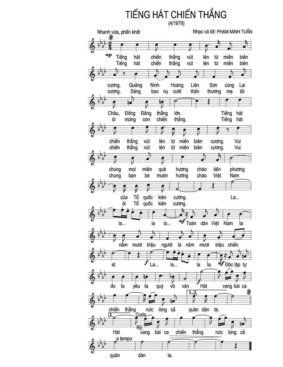 Hơn 40 năm đã trôi qua, những ca khúc này vẫn đang đi cùng năm tháng, gợi nhớ cho toàn dân Việt Nam những hồi ức của một giai đoạn lịch sử bi tráng và hào hùng ./.
